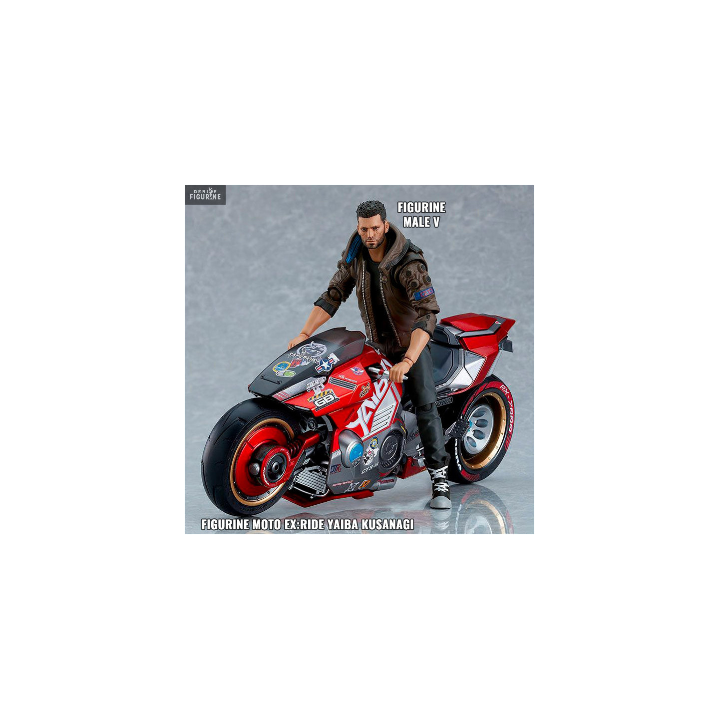 Cyberpunk 2077 est le dernier jeu à succès signé par la talentueuse équipe polonaise CD PROJEKT RED et si on oublie les bugs conséquents à la sortie, le jeu était à la hauteur des attentes ! La gamme FIGMA propose désormais des figurines de la licence et vous avez le choix entre le héros masculin V : Male V ou bien alors, avec le moyen de locomotion du jeu à savoir la ex:ride Yaiba Kusanagi. Si vous optez pour l'achat des deux figurines, il est possible de les combiner comme vous pouvez le voir sur les photos !