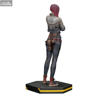 Mesurant environ 23 cm, cette figurine en PVC repose sur un socle hexagonal orné du logo Cyberpunk 2077. La sculpture fine met en valeur les détails du costume, les plis réalistes du tissu, et la finesse du visage. L’équilibre de la pose permet une exposition stable et nette, sans artifice. Une pièce idéale pour tout fan de l’extension Phantom Liberty ou de personnages féminins puissants et nuancés.