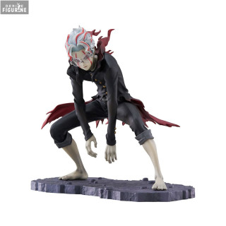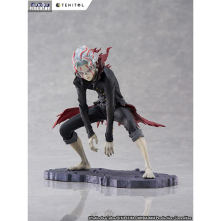 Cette figurine d’Okarun Transformed, fabriquée par FuRyu et issue de la collection Tenitol, capture parfaitement l’essence de cette transformation. Réalisée en PVC et mesurant 14 cm de haut, elle représente Ken dans une posture féline, prêt à bondir, ce qui traduit bien l'agilité et la puissance de sa forme paranormale. Son expression intense, accompagnée de ses yeux perçants et de ses cheveux gris hérissés et marqués de lignes rouges, reflète l’angoisse et la puissance de ce personnage dans sa version transformée. Les vêtements déchirés et les détails sur sa cape rouge ajoutent un effet dramatique à cette figurine, tandis que le socle en forme de sol fissuré renforce l’ambiance sombre et mystérieuse de son univers. Non articulée, cette figurine aux finitions soignées est un ajout remarquable pour tout collectionneur de Dandadan et pour ceux qui apprécient les personnages au caractère complexe et aux apparences fascinantes.