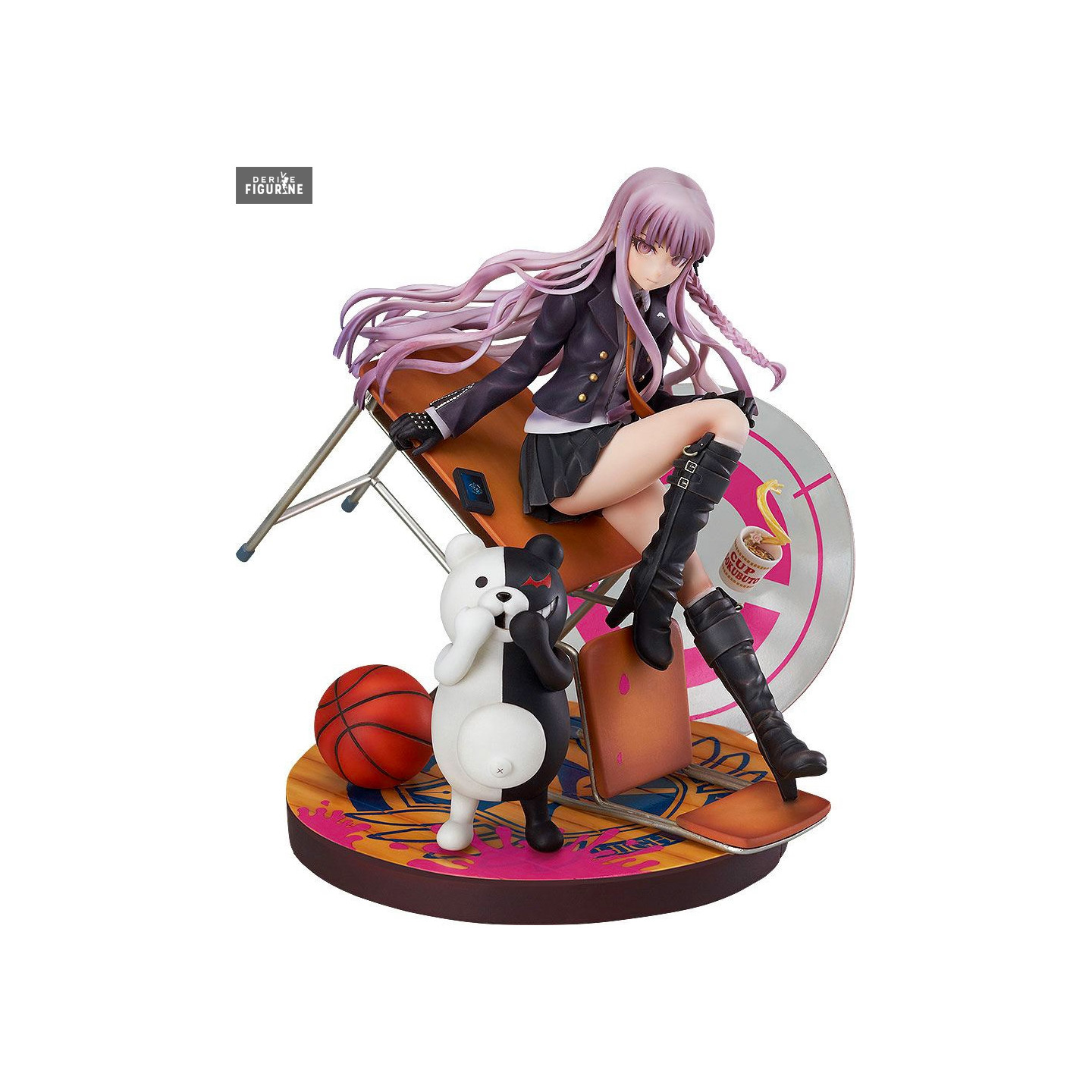 L'ensemble est monté sur un socle à l'effigie de l'insigne de l'Académie Hope's Peak, renforçant l'identité propre à la série. C'est une pièce qui saura se démarquer dans toute collection, invitant à la contemplation des détails finement ouvragés, comme ses bottes lacées et sa cravate parfaitement nouée.