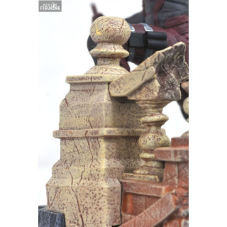 Cette figurine Gallery de Daredevil, créée par Diamond Select Toys, capture parfaitement l'intensité du personnage. Mesurant environ 28 centimètres, elle le représente en pleine action, prêt à se battre, avec ses bâtons caractéristiques en main. Le socle, détaillé avec des ruines et des débris, reflète les combats acharnés qu'il mène dans les rues de Hell's Kitchen. Chaque détail de son costume rouge et noir, jusqu'à la texture de l'armure, témoigne d'un travail de conception méticuleux.