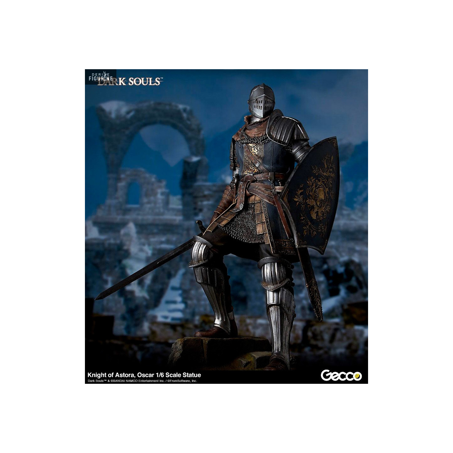 Figurine officielle en PVC de Oscar Knight of Astora d'environ 32 centimètres de haut à l'échelle 1/6. Elle est fabriquée par Gecco.