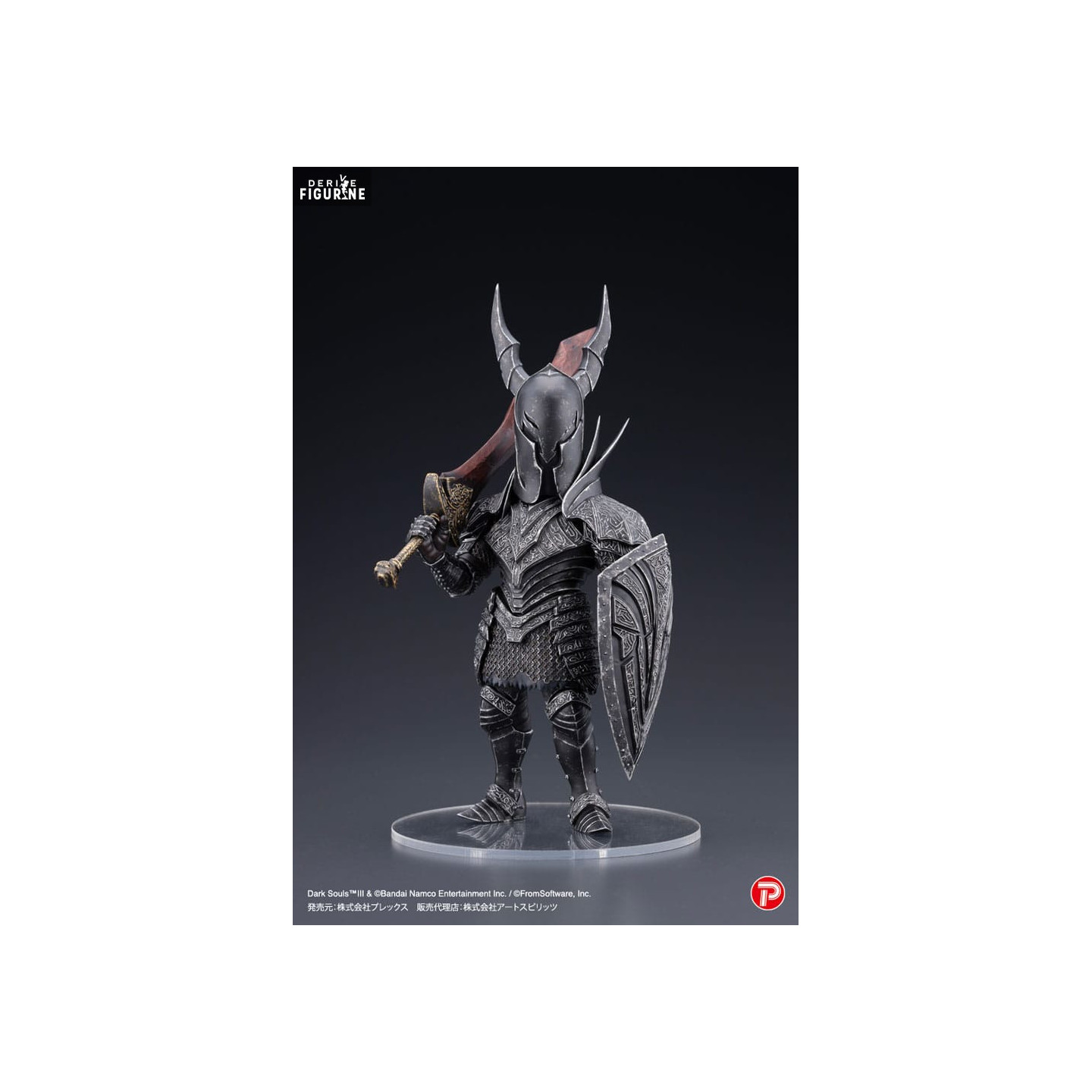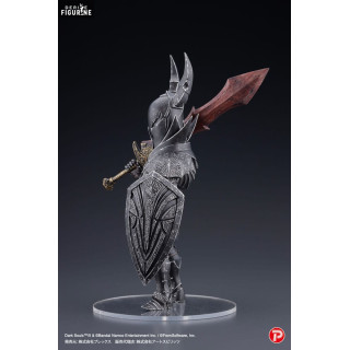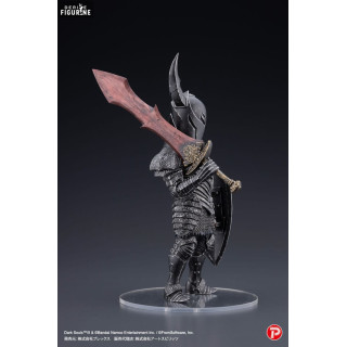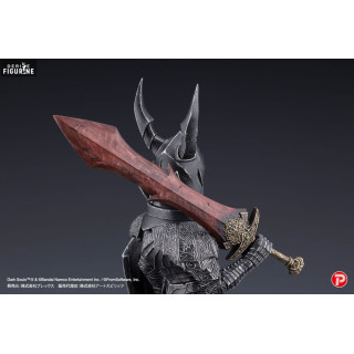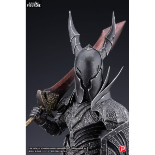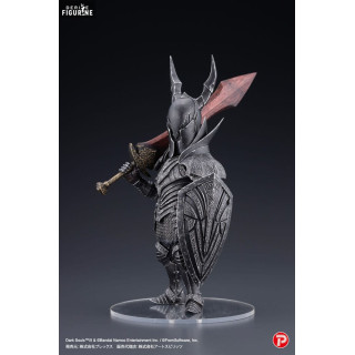 Cette figurine en PVC de 18 centimètres, issue de la collection Q Collection et fabriquée par Art Spirits, capture parfaitement l'essence de ces chevaliers. Le design détaillé de l'armure noire, finement sculptée et ornée de motifs gravés, reflète le réalisme sombre du jeu. Le casque aux cornes caractéristiques et l'imposant bouclier, soigneusement reproduit, ajoutent à la stature impressionnante du Black Knight. Armé de son épée massive aux teintes rouges comme brûlées par le feu, il semble prêt à défier tout aventurier assez courageux pour croiser son chemin. Le socle transparent apporte une touche élégante à cette pièce de collection, tout en mettant en valeur la silhouette imposante du chevalier.