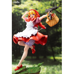 Mesurant environ 21 cm, cette pièce en PVC à l’échelle 1/7 est éditée par Kotobukiya dans la collection Bishoujo. Les finitions soignées soulignent les textures du tissu, la finesse du panier et les détails de l’arme. Le socle en relief ajoute une belle stabilité et évoque le sol d’une forêt de conte, détournée avec malice.