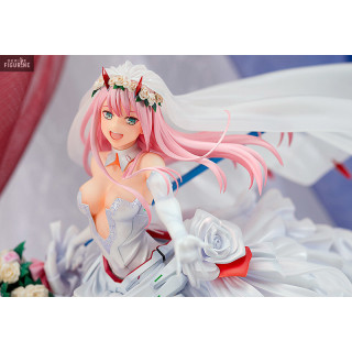 L'anime Darling in the FranXX s'offre une somptueuse figurine de Zero Two dans une version mariée vraiment extraordinaire ! Entre la pose, le niveau de détails et son visage radieux ne pourront que conquérir le cœur d'Hiro... Une véritable masterpiece si vous êtes fan de la célèbre pilote du Strelizia !