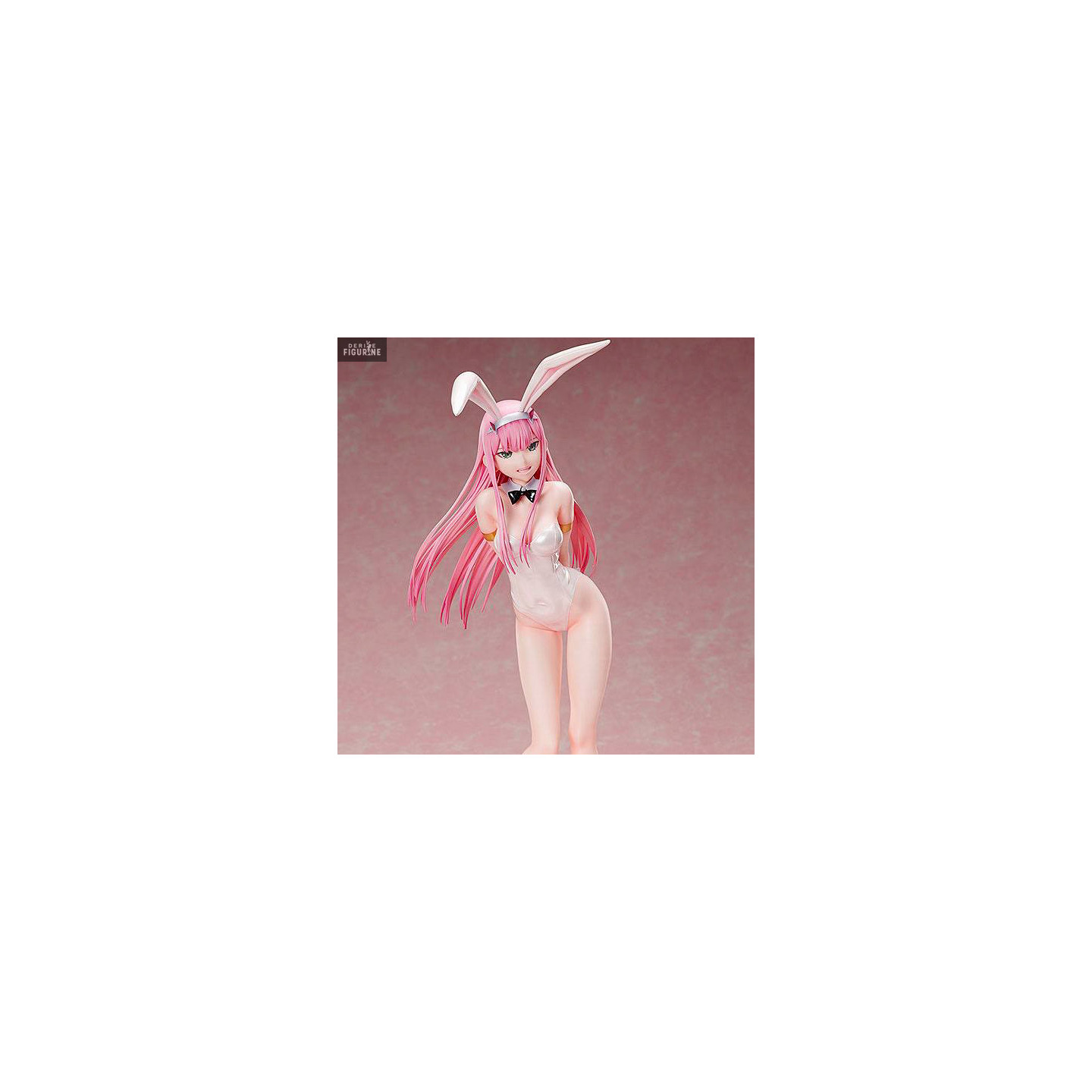 Zero Two n'a pas eu une enfance très simple car du fait qu'elle possède du sang Hurleurs, elle a été considérée comme un monstre. Cela fera d'elle une jeune femme froide mais très douée en tant que pilote. Ce coup-ci, ce n'est pas son plugsuit qu'elle porte mais bel et bien une tenue de bunny girl. Comparé à la dernière figurine où elle en avait mis une, celle-ci est blanche et elle ne porte pas de bas.