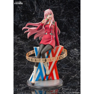 Figurine officielle de Zero Two en PVC mesurant environ 24 centimètres de haut, à l'échelle 1/7. Le fabricant est Proof.