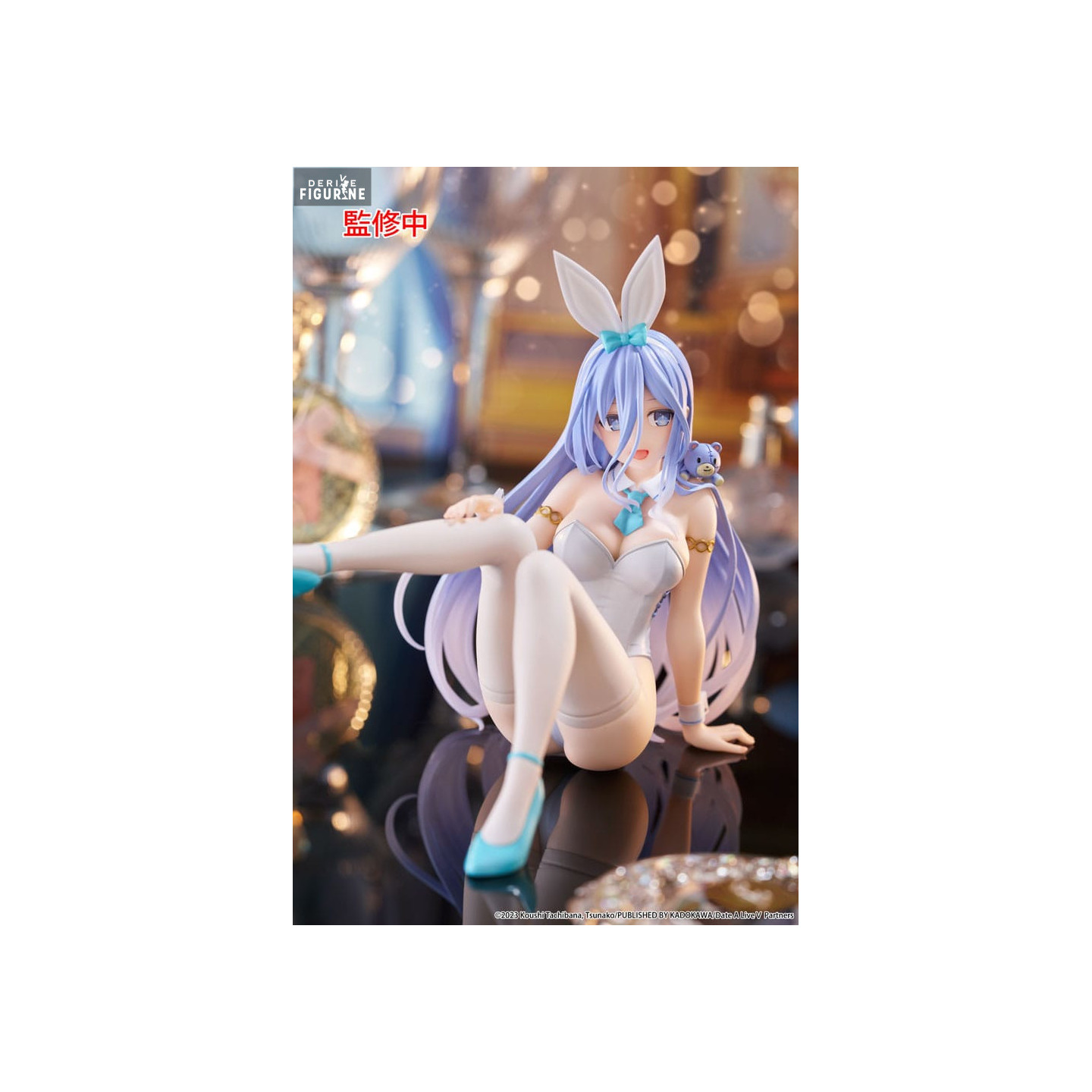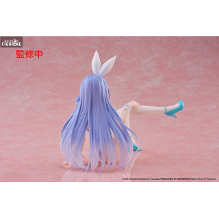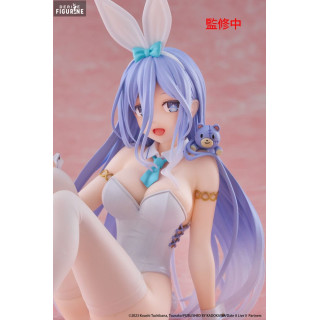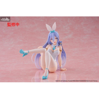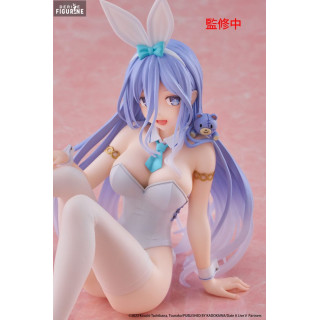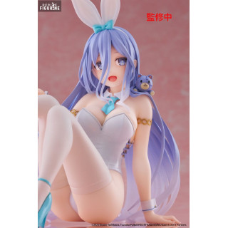 La figurine proposée ici capture Mio dans une pose pleine de légèreté, très éloignée de son rôle sérieux dans l’histoire, puisqu’elle la montre dans une tenue de lapine d’un blanc immaculé, ornée d’un nœud bleu et d’accessoires raffinés, fidèle à la collection Desktop Cute. Assise de façon élégante avec un regard malicieux, elle arbore de longues jambes croisées et une gestuelle délicate. Le détail de sa chevelure mauve pastel, ses oreilles de lapin, les petits rubans turquoise et même le mini ourson sur son épaule ajoutent un charme irrésistible à cette représentation alternative. Fabriquée par Taito, cette figurine en PVC mesure environ 13 centimètres de haut, et est conçue pour égayer un bureau ou une étagère avec style et douceur.