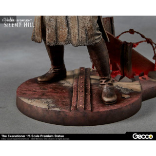 Dead By Daylight est un jeu vidéo où de nombreux tueurs doivent empêcher les survivants de fuir... Quelques collaborations avec d'autres œuvres ont vu le jour et nottament avec Silent Hill Chapter. Voici la figurine du tueur The Executioner dans sa version DBD pour cette somptueuse et réaliste réalisation !