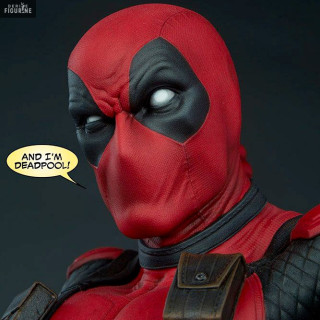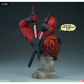 Buste officiel de Deadpool en résine mesurant environ 28 x 20 x 10 centimètres. Le fabricant est Sideshow Collectibles.