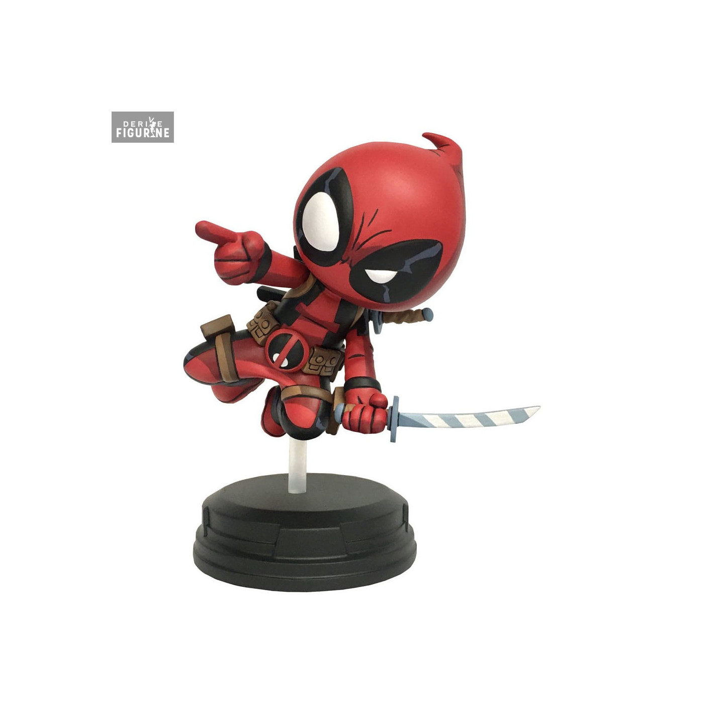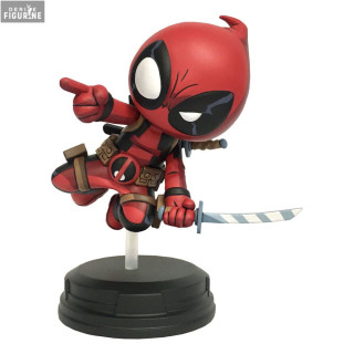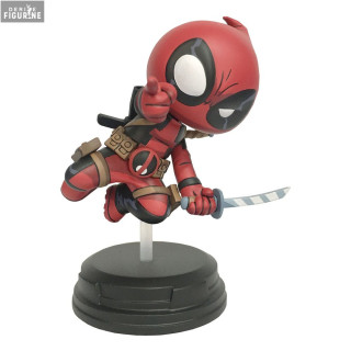 Figurine officielle de Deadpool (Jumping) en résine mesurant environ 18 centimètres de haut. Le fabricant est Diamond Select Toys.