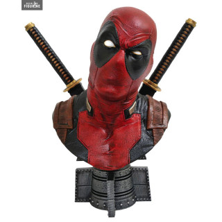 Buste officiel de Deadpool en résine d'environ 25 centimètres de haut à l'échelle 1/2. Le fabricant est Diamond Select Toys.
