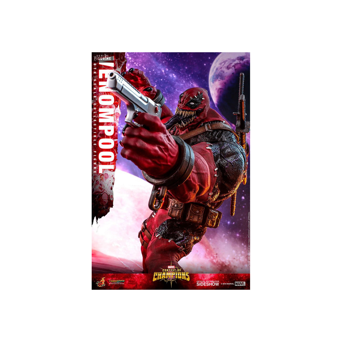 En provenance du jeu vidéo Marvel : Tournoi des champions, voici la fusion de deux anti-héros de l'univers Marvel en un seul être appelé Venompool. Il est le mélange terrifiant entre Venom et Deadpool. Il est livré avec une multitude d'armes et accessoires et le rendu est tout bonnement bluffant.