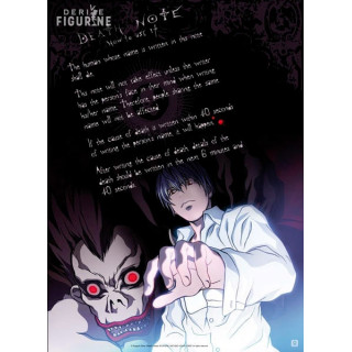 Poster avec pelliculage brillant de Death Note qui mesure 52x38 centimètres. Il possède une excellente qualité d'impression et un grammage de 170g/m². Le fabricant est ABYstyle.