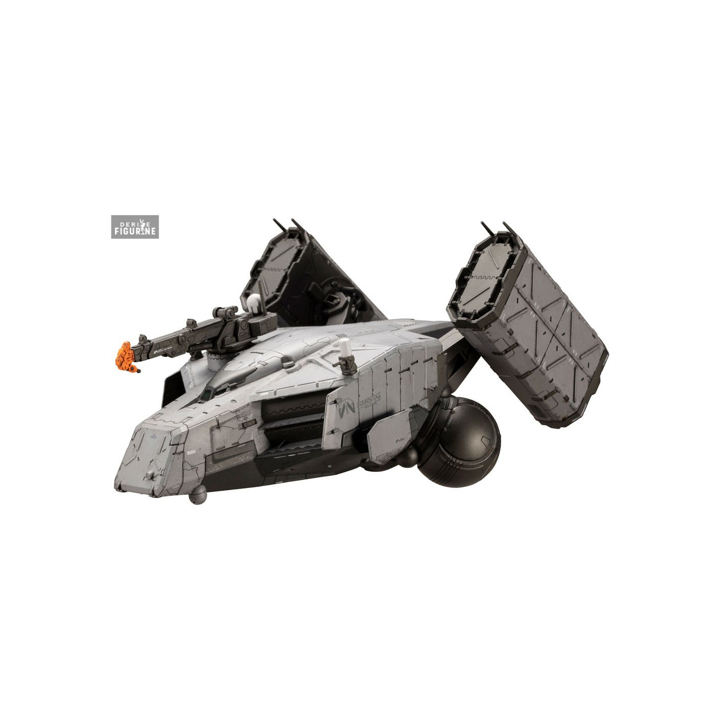 Issu de l’univers singulier et déroutant de Death Stranding, le DHV Magellan est un vaisseau de transport emblématique introduit dans l’extension On the Beach, ici magnifiquement reproduit en modèle réduit par Kotobukiya dans un kit plastique à l’échelle 1/350. À mi-chemin entre design industriel réaliste et technologie de science-fiction, ce véhicule évoque à la fois la lourdeur logistique et la poésie mécanique propres à l’esthétique du jeu de Hideo Kojima. Le Magellan incarne l’idée de mouvement, de connexion et de transport dans un monde brisé par l’isolement.