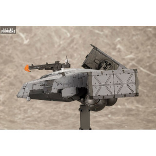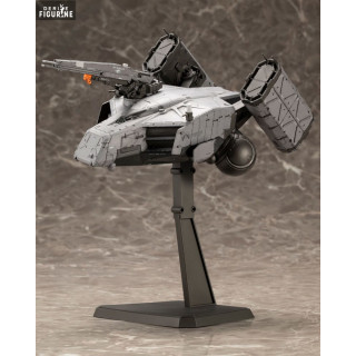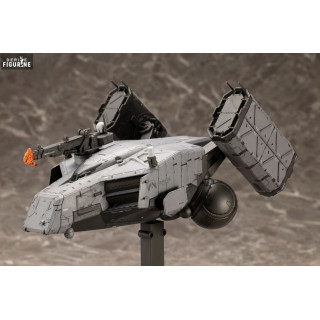 Ce modèle en plastique de 22 centimètres de long, proposé dans la collection Plastic Model Kit de Kotobukiya, impressionne par la qualité de ses détails : lignes de panneaux gravées, textures métalliques réalistes, bras articulés, et armement finement sculpté. Le socle inclus permet une exposition dynamique en mode stationnaire ou en vol, et les effets de peinture suggèrent un usage intensif, fidèle à l’environnement rude du jeu. La présence d’une mitrailleuse montée avec effet de tir ajoute une touche d’intensité visuelle à l’ensemble. Il s’agit d’un kit à monter soi-même, idéal pour les modélistes confirmés ou les passionnés de l’univers Kojima souhaitant enrichir leur collection d’un objet rare et emblématique.