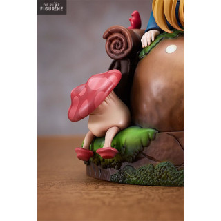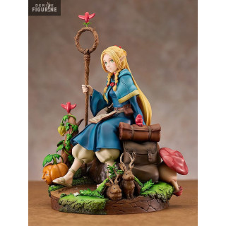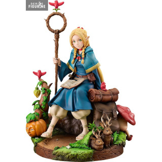 Assise sur un socle diorama représentant la nature et orné d'adorables créatures de l'anime, Marcille semble prête à lancer un sort ou à explorer les mystères du donjon. La végétation luxuriante crée une atmosphère immersive, transportant les collectionneurs directement dans l'univers captivant de "Delicious in Dungeon".