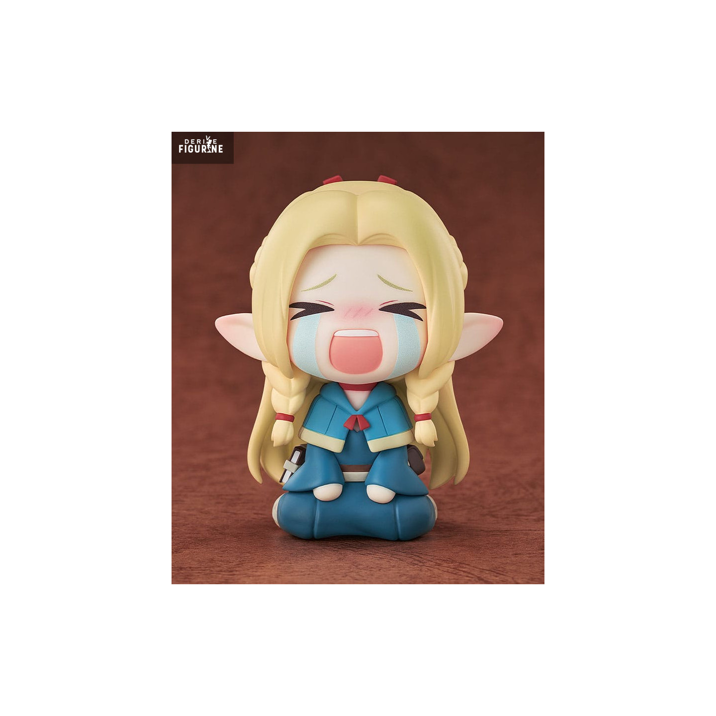 Cheveux blonds nattés, oreilles pointues et kimono bleu, Marcille est représentée en position assise, les larmes ruisselant sur ses joues. Cette scène iconique résume à elle seule son tempérament ultra émotif — une aventurière brillante et loyale, mais qui panique vite dès que l’expédition tourne de façon imprévisible (ce qui est souvent le cas dans un donjon où on mange ses ennemis !).