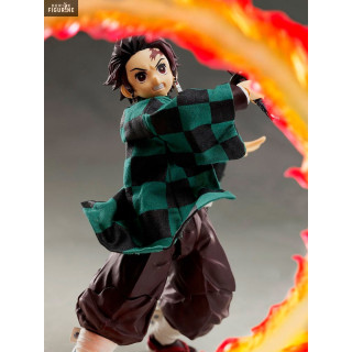 Tanjiro Kamado est un jeune héros maniant le sabre comme personne et qui a pour but de venger le meurtre orchestré dans son village par les démons... Lui et Nezuko, sa petite sœur sont les seuls rescapés mais le démon a maudit la sœur de Tanjiro et désormais il veut également tout faire pour la guérir. Le personnage principal de Demon Slayer: Kimetsu no Yaiba est ainsi représenté dans une figurine articulée de toute beauté avec certains vêtements en tissu ce qui les rend amovibles. Il y a également divers effets et autres éléments permettant des expositions diverses et variées.