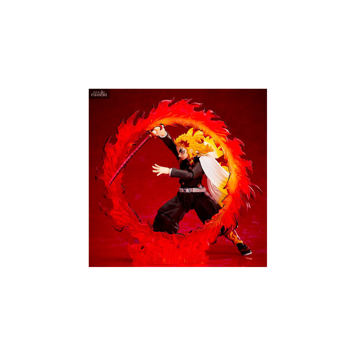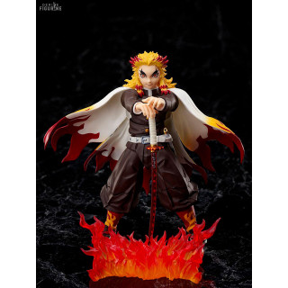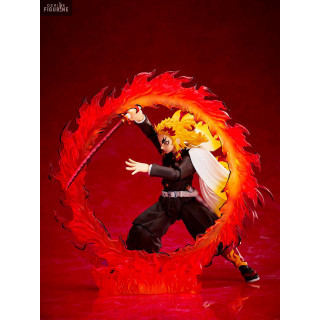 Figurine officielle de Kyojuro Rengok mesurant environ 14 centimètres de haut, à l'échelle 1/12. Le fabricant est Aniplex.