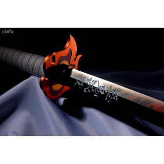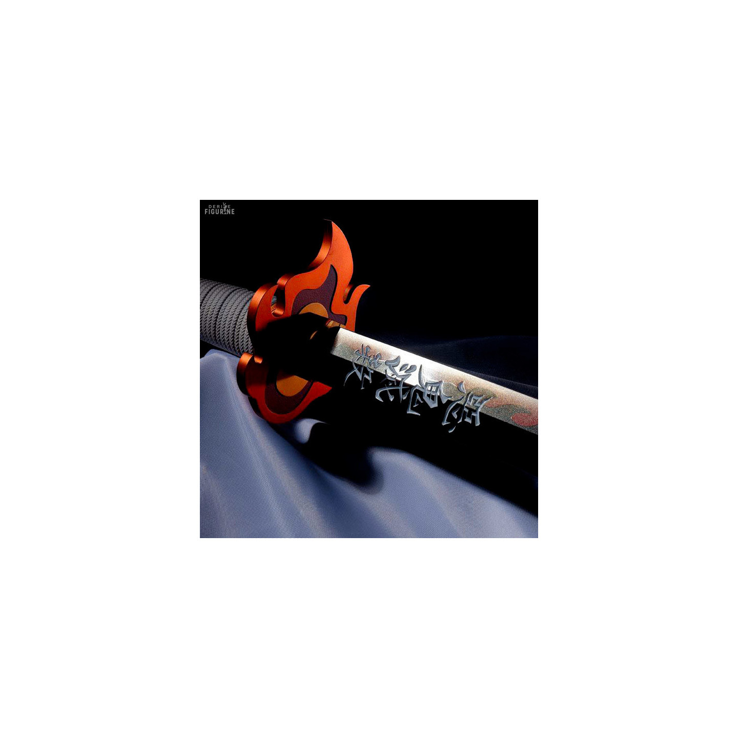 Si votre pilier favori dans Demon Slayer : Kimetsu no Yaiba est Kyojuro Rengoku, cela tombe très bien car vous allez pouvoir lui ressembler. C'est en tout cas son accessoire fétiche, à savoir Nichirin, son épée que vous allez également pouvoir arborer fièrement. En plus de cela, si vous mettez deux piles AAA (non fournies), vous pourrez activer des fonctions sonores. De quoi compléter un cosplay, ou simplement pour l'exposer.