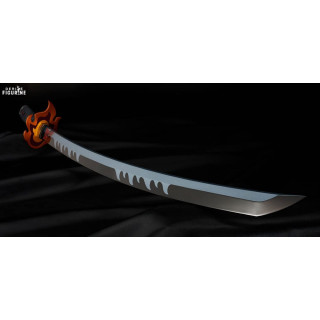 La lame, ornée de motifs noirs élégants, capture l'essence même de l'épée vue dans l'anime, tandis que la garde inspirée de Rengoku ajoute une touche unique à cette réplique. Cet objet, d’une longueur d’environ 88 centimètres, est conçu pour offrir une immersion totale aux fans, qu’ils soient amateurs d’objets de collection ou fervents admirateurs de l’œuvre.