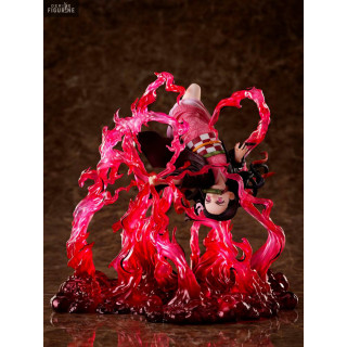 En provenance de l'anime et manga Demon Slayer: Kimetsu no Yaiba, voici une réalisation de la petite sœur de Tanjiro qui n'est autre que Nezuko Kamado dans une figurine dynamique et très détaillée nous proposant une version baptisée "Exploding Blood" qui est tout bonnement incroyable ! Exploding Blood est une technique de Nezuko lui permettant d'utiliser son sang pour en faire des flames et elle peut aussi bien guérir ses amis que détruire ses ennemis avec... Une somptueuse statuette faisant honneur à sa technique.