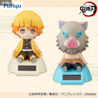 Figurines officielles de Zenitsu & Inosuke en PVC mesurant environ 11 centimètres de haut. Le fabricant est FuRyu.