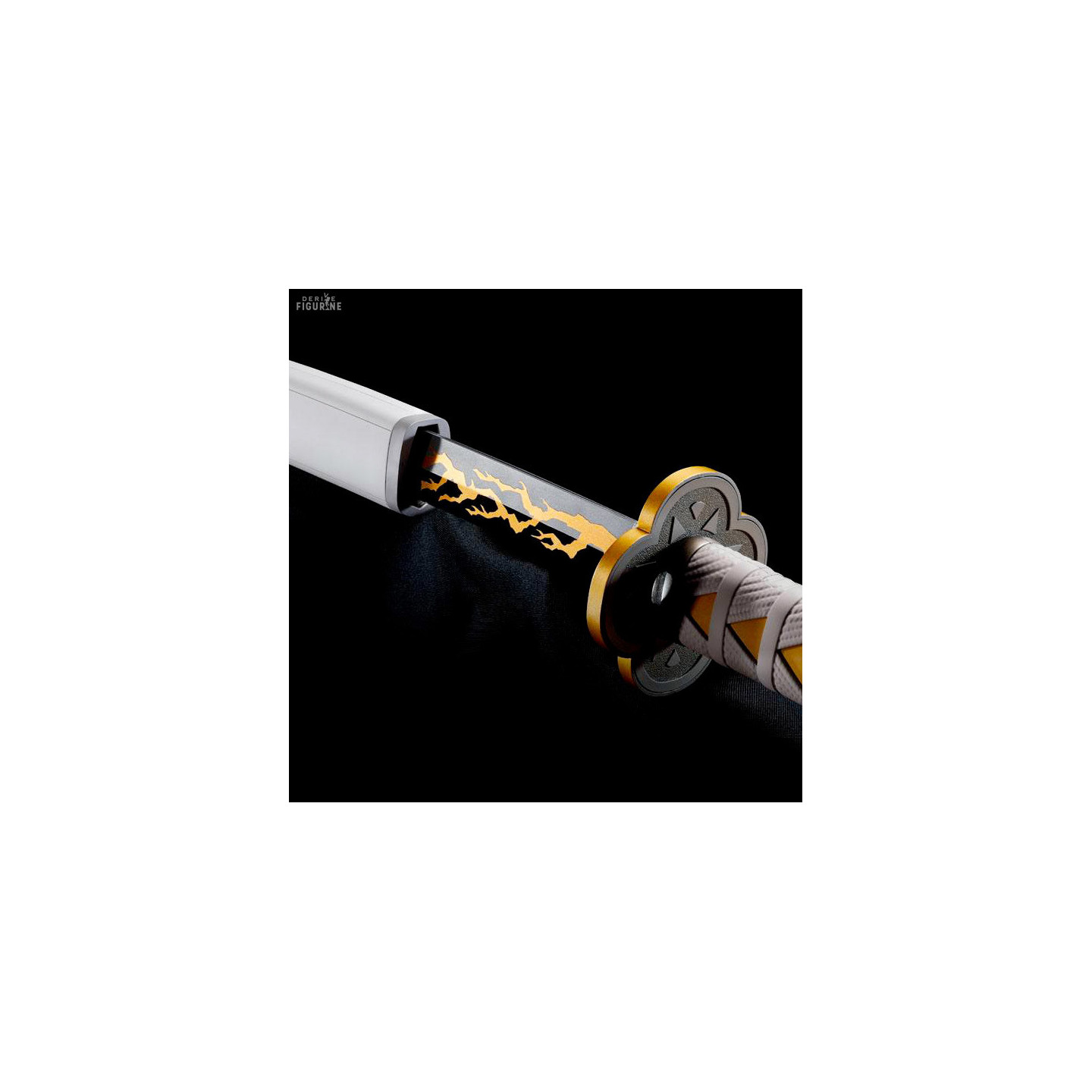 On peut dire que Zenitsu est un très bon chasseur de démons, même s'il est plutôt trouillard. En combat, il utilise un Nichirin, une sorte de sabre avec une lame spéciale, parfaite pour tuer les démons. Si vous en voulez une aussi, c'est possible avec cette réplique qui peut se ranger dans son fourreau, et possède des fonctions sonores. Elle fonctionne avec deux piles AAA (non incluses).