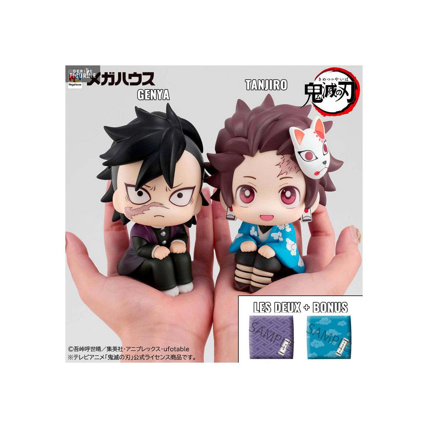 Figurine officielle au choix entre Tanjiro Kamado ou Genya ou Les deux en PVC mesurant environ 11 centimètres de haut. Elle est issue de la collection Look Up. Le fabricant est Megahouse.