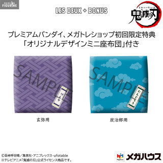 Vous avez deux nouvelles figurines qui viennent agrandir la collection des Look Up. Dans un premier temps, vous avez donc Tanjiro Kamado avec sa tenue bleue et son masque sur la tête. L'autre choix que vous avez est donc Genya Shinazugawa. On peut dire qu'il n'est pas vraiment l'incarnation de la joie, mais il va quelque peu changer au contact de Tanjiro. Si vous êtes vraiment de grands fans, vous pouvez aussi prendre Les deux, et vous aurez en plus des petits coussins en tissu pour les poser dessus.