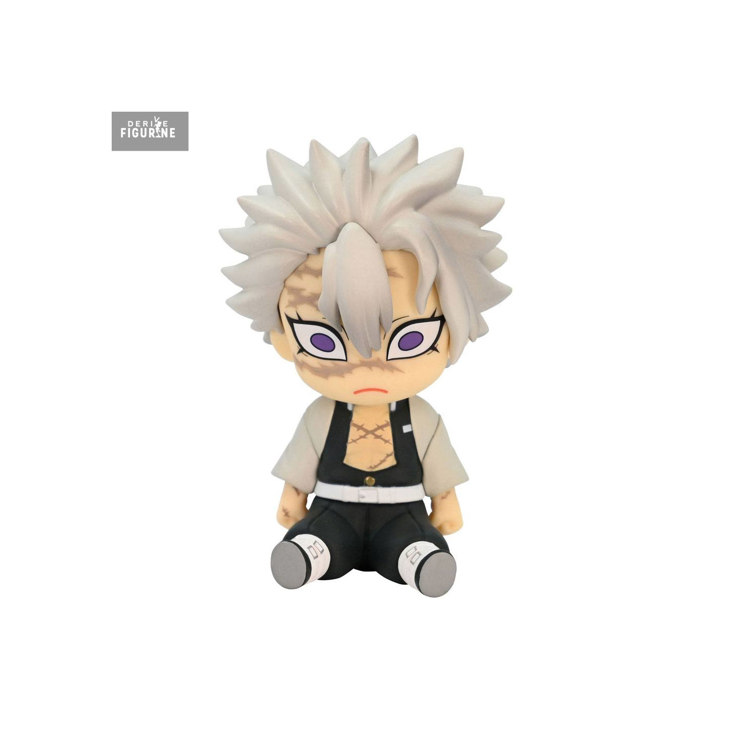 Sanemi, c’est l’explosion à peine contenue. Même assis dans sa version Potetto, avec ses bras relâchés et son regard perçant, il dégage une tension brute. Ses cicatrices, ses cheveux hérissés, ses yeux violets cernés de noir… tout chez lui hurle "ne m’approche pas" — sauf que cette fois, il ne fait que 9 cm de haut.