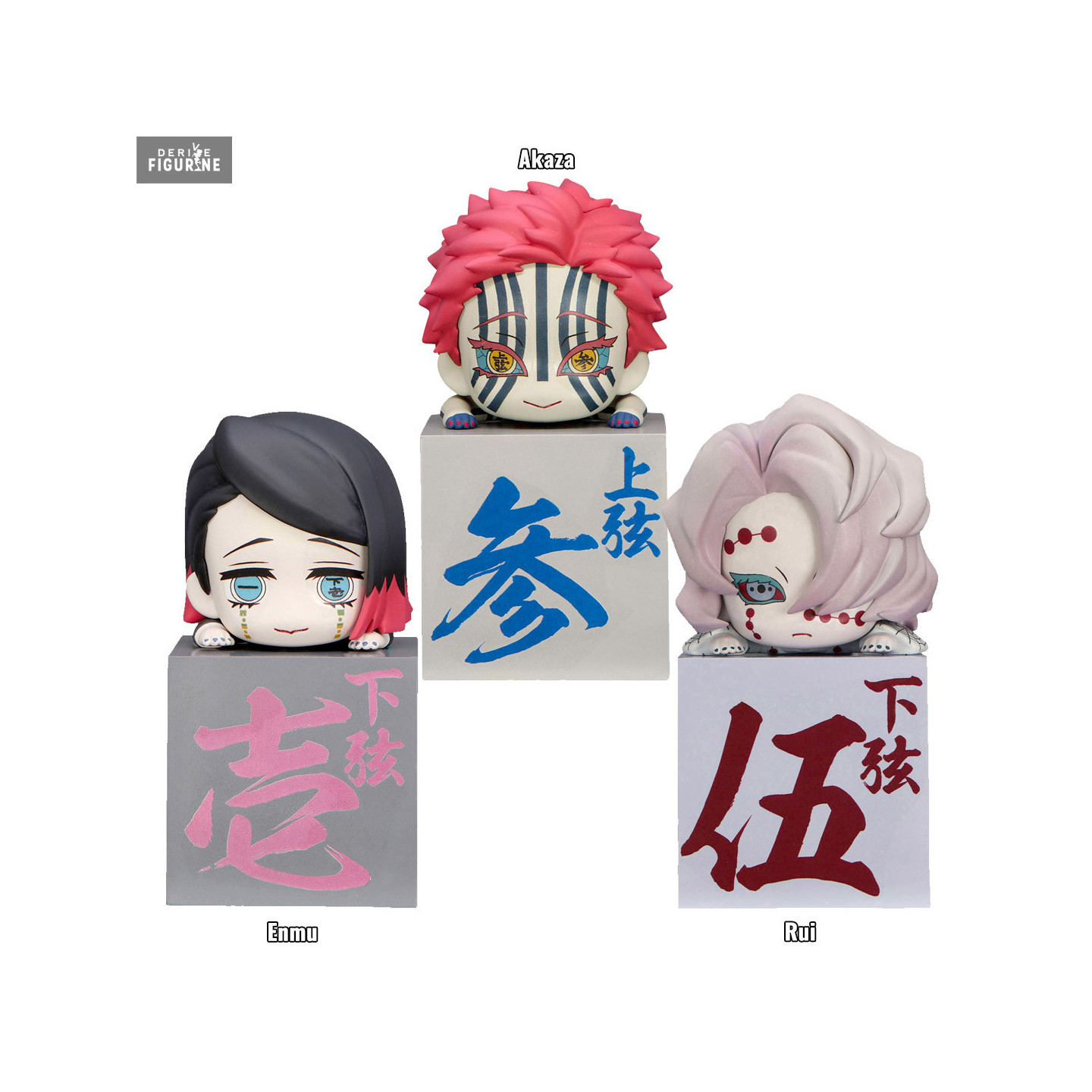 Figurine officielle au choix entre Akaza, Enmu ou Rui en PVC mesurant environ 10 centimètres de haut. Elle est issue de la collection Hikkake. Le fabricant est FuRyu.
