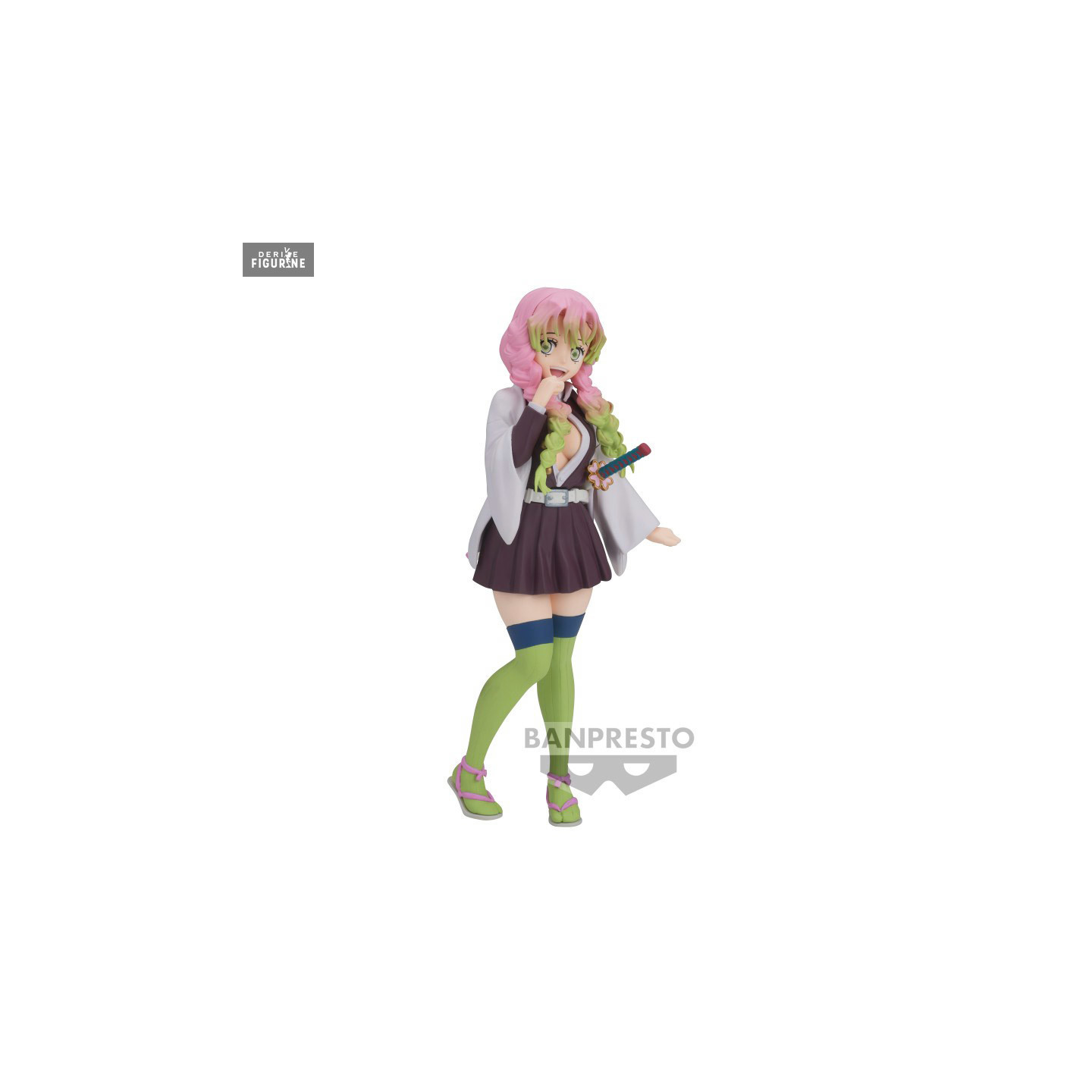 Figurine officielle de Mitsuri Kanroji en PVC mesurant environ 22 centimètres de haut. Elle est issue de la collection Glitter & Glamours. Le fabricant est Banpresto.