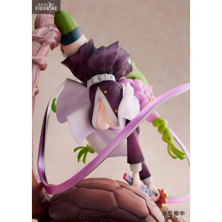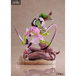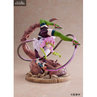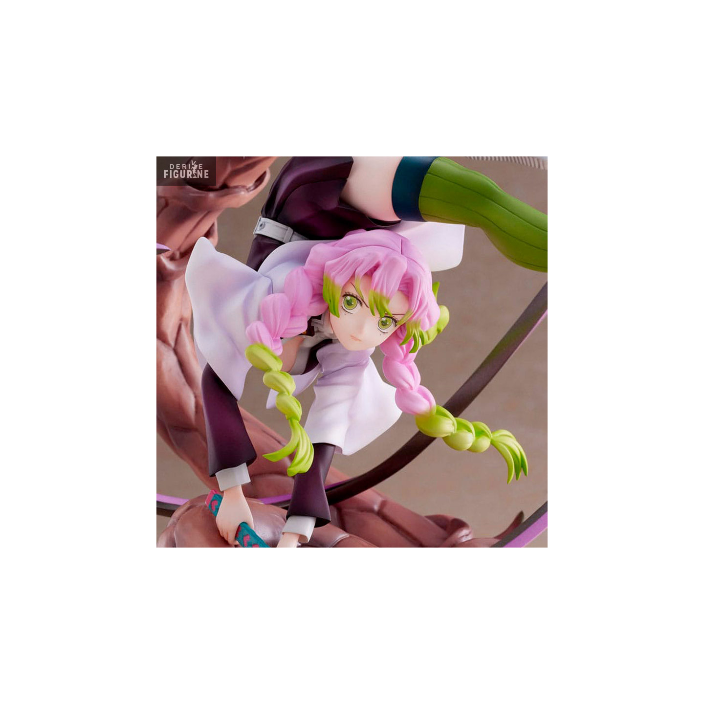 Mitsuri Kanroji est un personnage populaire de "Demon Slayer: Kimetsu no Yaiba". Surnommée le "Pilier de l'Amour", elle est reconnaissable à ses cheveux roses et son uniforme de pourfendeur de démons. Mitsuri se distingue par sa bienveillance, sa force physique et son dévouement à protéger les innocents. Son charme et sa personnalité attachante en font un personnage apprécié de la série. Elle est ici présentée dans une figurine dynamique et aérienne ou elle utilise ses techniques de pourfendeuses de démons !