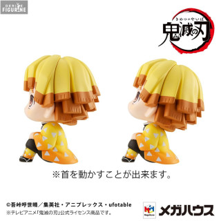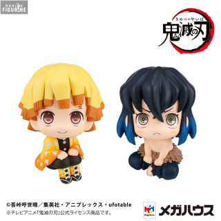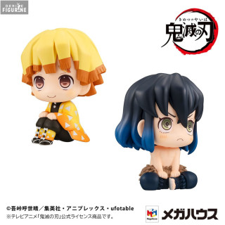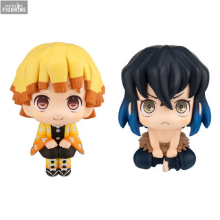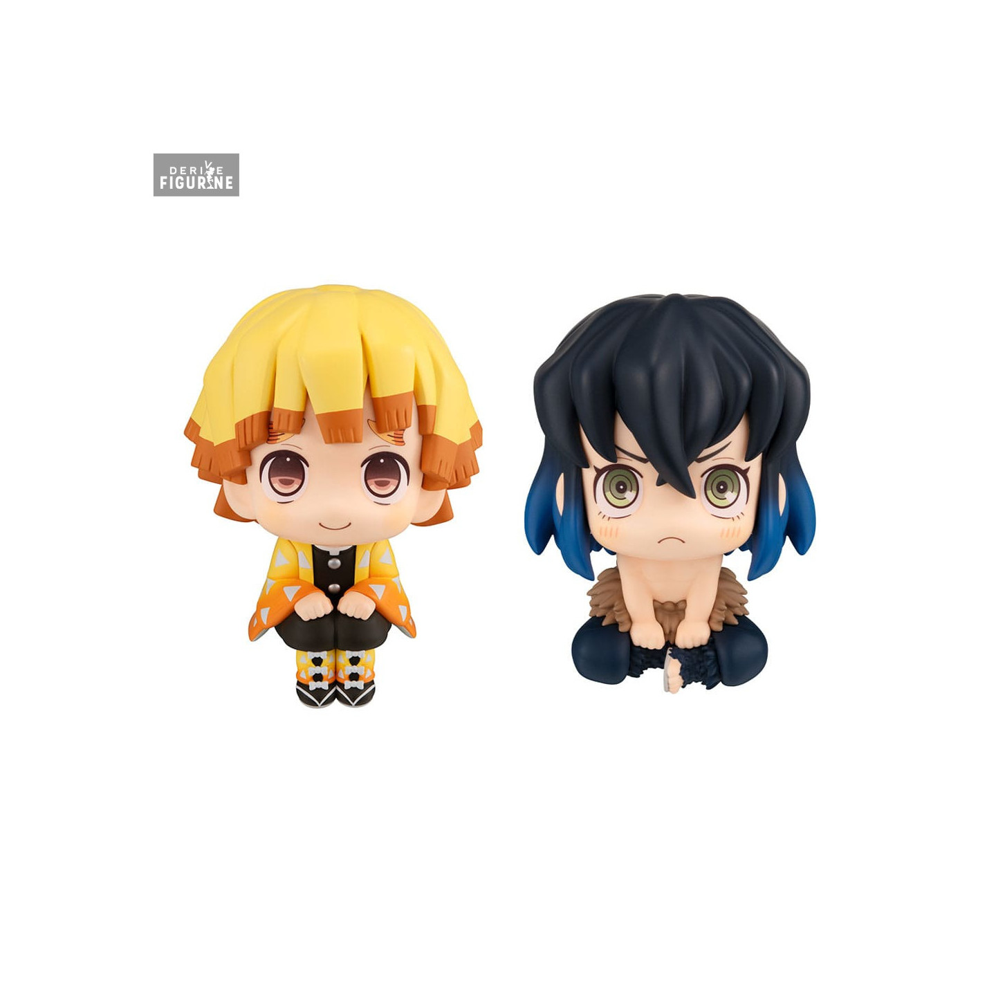 Figurines officielles de Zenitsu Agatsuma Smile & Inosuke Hashibira Bossy, With Gift en PVC mesurant environ 11 centimètres de haut. Elles sont issues de la collection Look Up. Le fabricant est Megahouse.