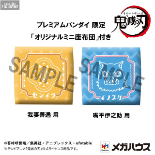 Cette version spéciale "With Gift" inclut deux mini-coussins décoratifs, un jaune pour Zenitsu et un bleu pour Inosuke, ornés de motifs et de symboles associés aux personnages. Ces coussins permettent aux figurines de s'asseoir confortablement et ajoutent une touche ludique et esthétique à l'ensemble, rendant ce pack encore plus attrayant pour les collectionneurs et les fans.