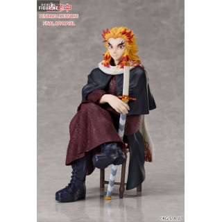 Figurine officielle de Kyojuro Rengoku mesurant environ 16 centimètres de haut. Le fabricant est Aniplex.