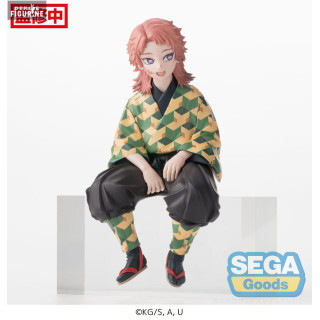 Sabito est représenté dans une pose assise décontractée, reflétant à la fois sa sagesse et sa nature bienveillante. Vêtu de son habit traditionnel, un haori au motif géométrique vert et jaune, et de son pantalon bouffant noir, chaque détail de son costume est reproduit avec une grande précision. Le visage de Sabito, avec son expression douce et son regard perçant, est sculpté avec une minutie impressionnante, rendant hommage à son rôle crucial dans l'entraînement de Tanjiro Kamado.