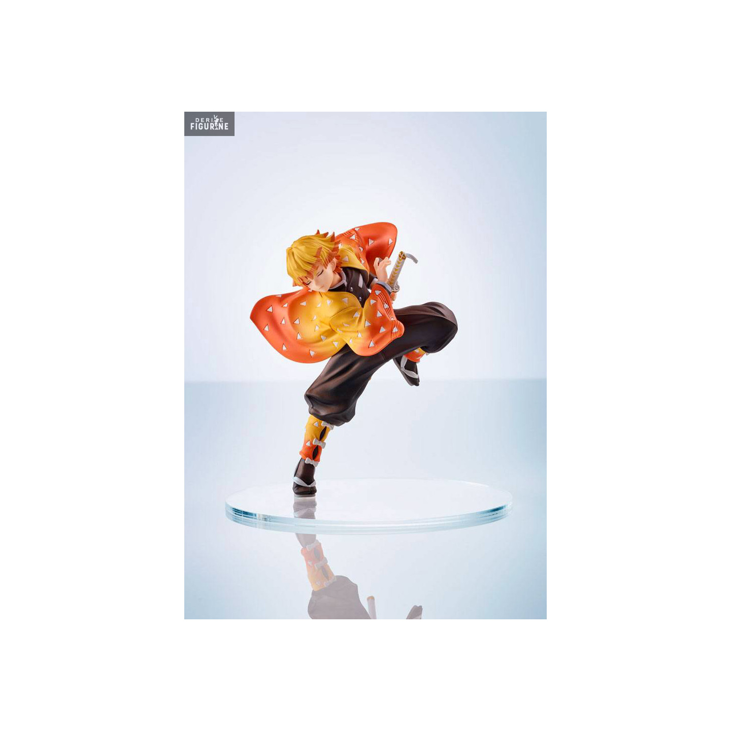 Cette figurine capture avec élégance un moment clé de Zenitsu, mettant en avant sa concentration inébranlable juste avant de déclencher une attaque fulgurante. Sa posture dynamique, accroupi avec sa lame dégainée, symbolise parfaitement le contraste entre sa personnalité nerveuse et la maîtrise impressionnante de sa technique lorsqu'il entre en action. Le souci du détail est saisissant : sa chevelure jaune vif, sa tenue iconique ornée de motifs triangulaires, et la finesse de son katana sont tous reproduits avec une précision remarquable.