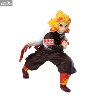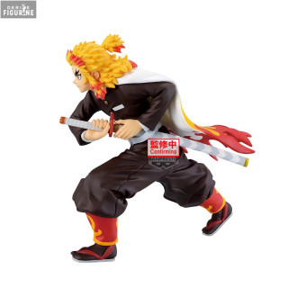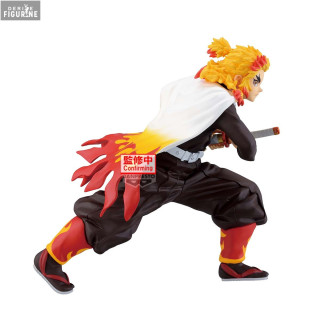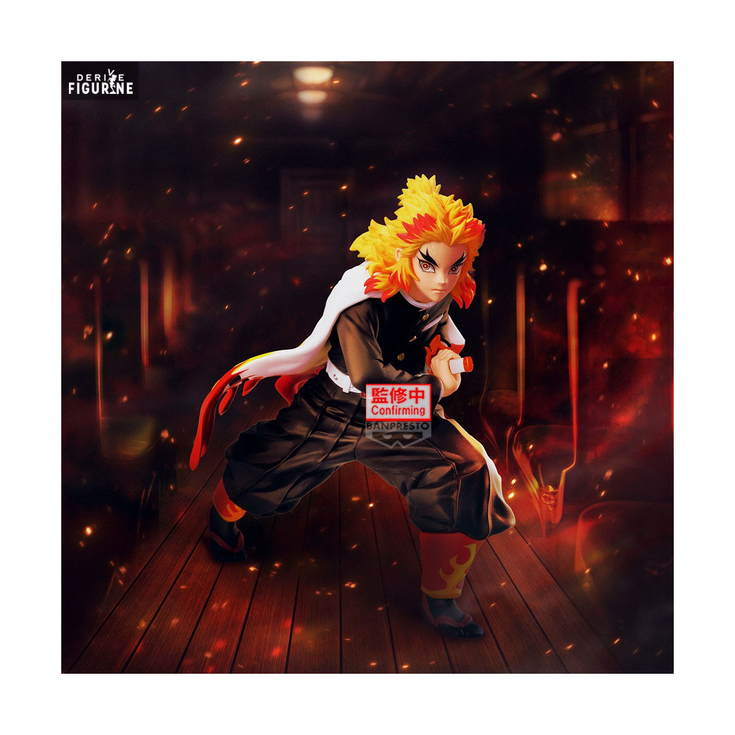 Figurine officielle de Kyojuro Rengoku en PVC mesurant environ 16 centimètres de haut. Elle est issue de la collection Maximatic. Le fabricant est Banpresto.