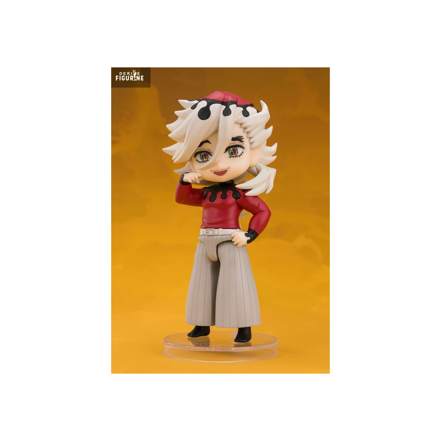 Fabriquée par Tamashii Nations, cette pièce en PVC appartient à la collection Figuarts mini, spécialisée dans les figurines stylisées, compactes et expressives. Malgré sa petite taille, le rendu est précis, les couleurs vibrantes, et la figurine tient solidement sur son socle transparent. Un petit format parfait pour les fans de Demon Slayer qui veulent une touche de cruauté déguisée en sourire.
