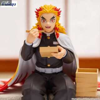 Figurine officielle de Kyojuro Rengoku en PVC mesurant environ 14 centimètres de haut. Elle est issue de la collection Noodle Stopper. Le fabricant est FuRyu.