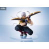 Cette figurine le représente en position accroupie, prêt à bondir avec ses deux lames nichées sur ses épaules, tenues fermement par des chaînes. Son bandeau frontal argenté, ses accessoires dorés, ses bras musclés et ses marques rouges sous les yeux sont fidèlement reproduits, capturant son charisme hors norme et sa posture de combat élégante. On ressent dans cette pose toute sa concentration, sa grâce martiale et son sens du spectacle.