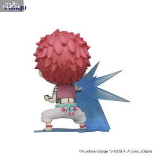 Visage marqué de tatouages, regard perçant et sourire carnassier : Akaza, rang supérieur trois des Douze Lunes Démoniaques, débarque en version chibi... mais toujours aussi menaçant. Véritable machine de guerre au corps à corps, il allie brutalité, vitesse et instinct meurtrier avec une froideur qui glace le sang. Et même dans ce format mini, sa présence est redoutable.