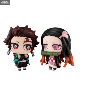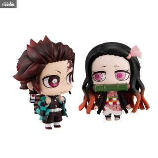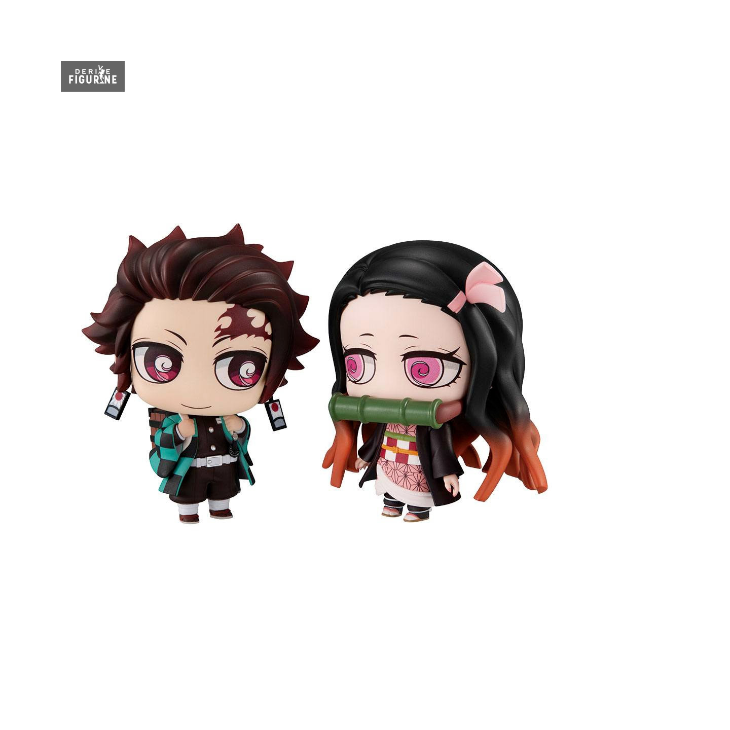 Figurines officielles de Tanjirou & Nezuko Kamado en PVC mesurant environ 7 centimètres de haut. Le fabricant est Megahouse.