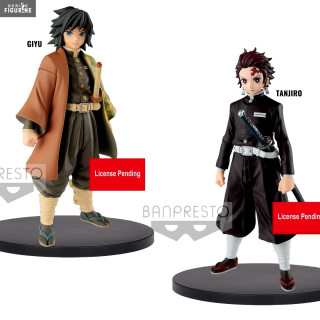 Figurine officielle au choix entre Giyu Tomioka ou Tanjiro Kamado en PVC mesurant environ 16 centimètres de haut. Le fabricant est Banpresto.