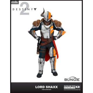 Figurine officielle de Lord Shaxx mesurant environ 25 centimètres de haut. Le fabricant est McFarlane Toys.
