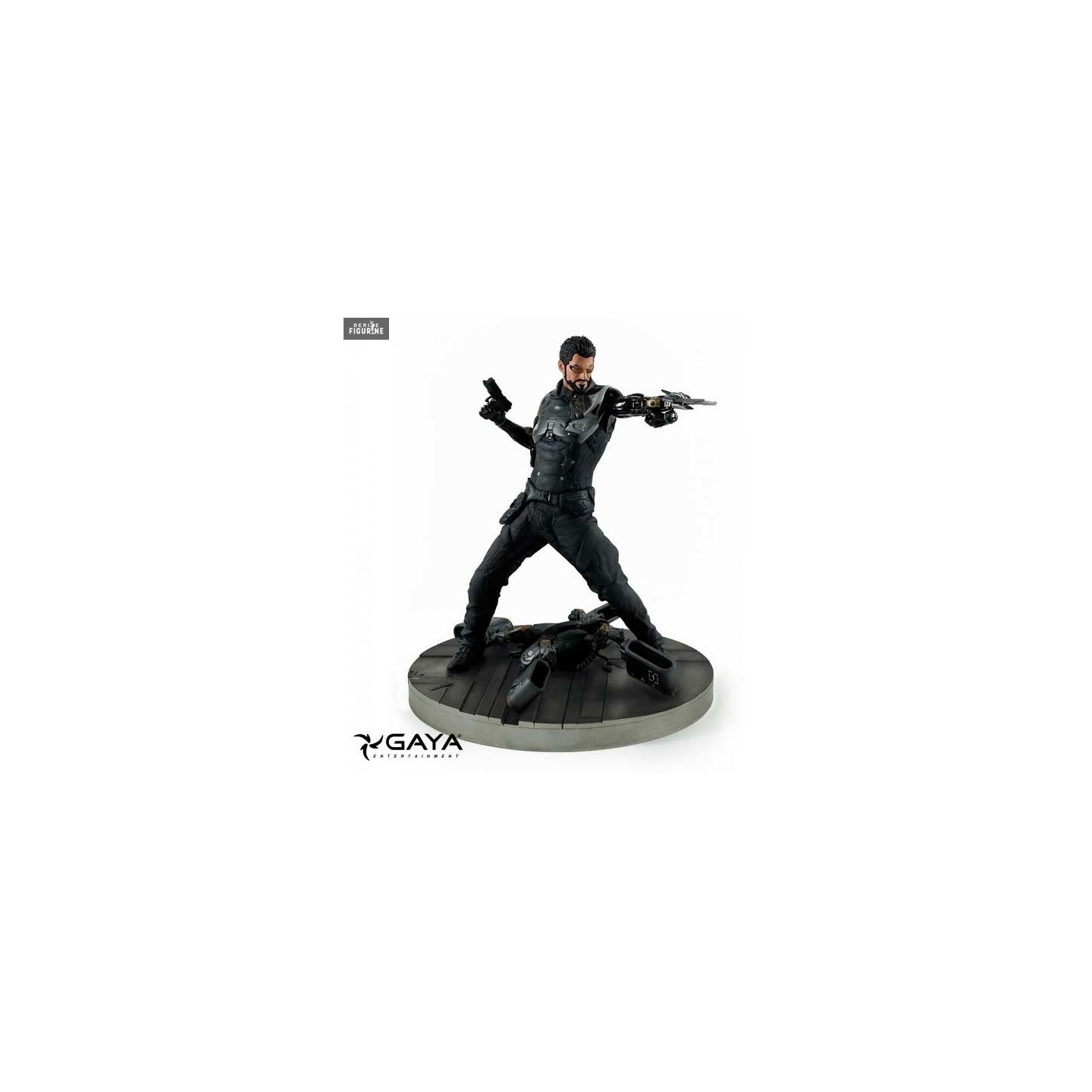 Figurine officielle en PVC d'Adam Jensen d'environ 18 centimètres de haut. Le fabricant est Gaya Entertainment.
