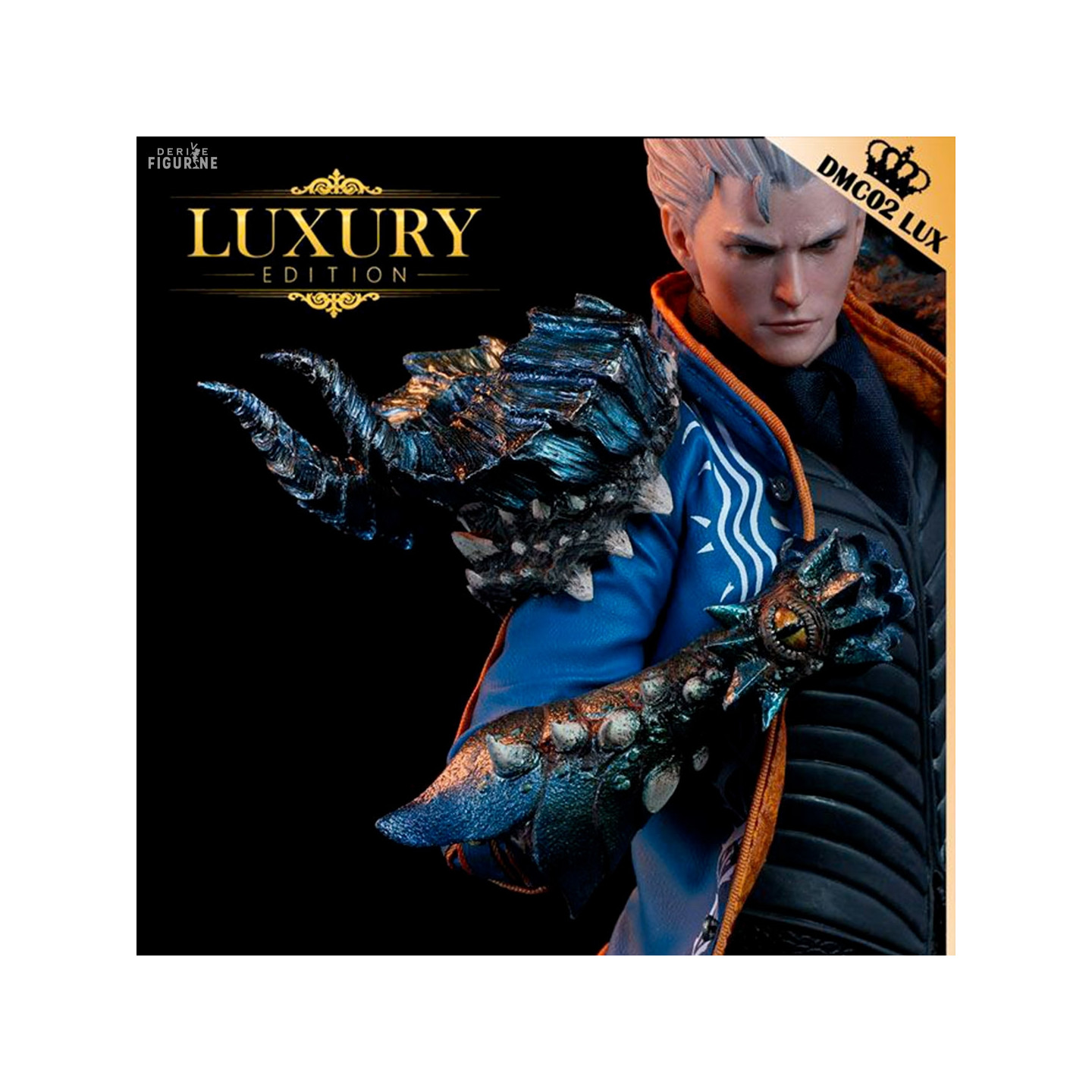 Figurine officielle de Vergil mesurant environ 30 centimètres de haut, à l'échelle 1/6. Le fabricant est Asmus Collectible Toys.